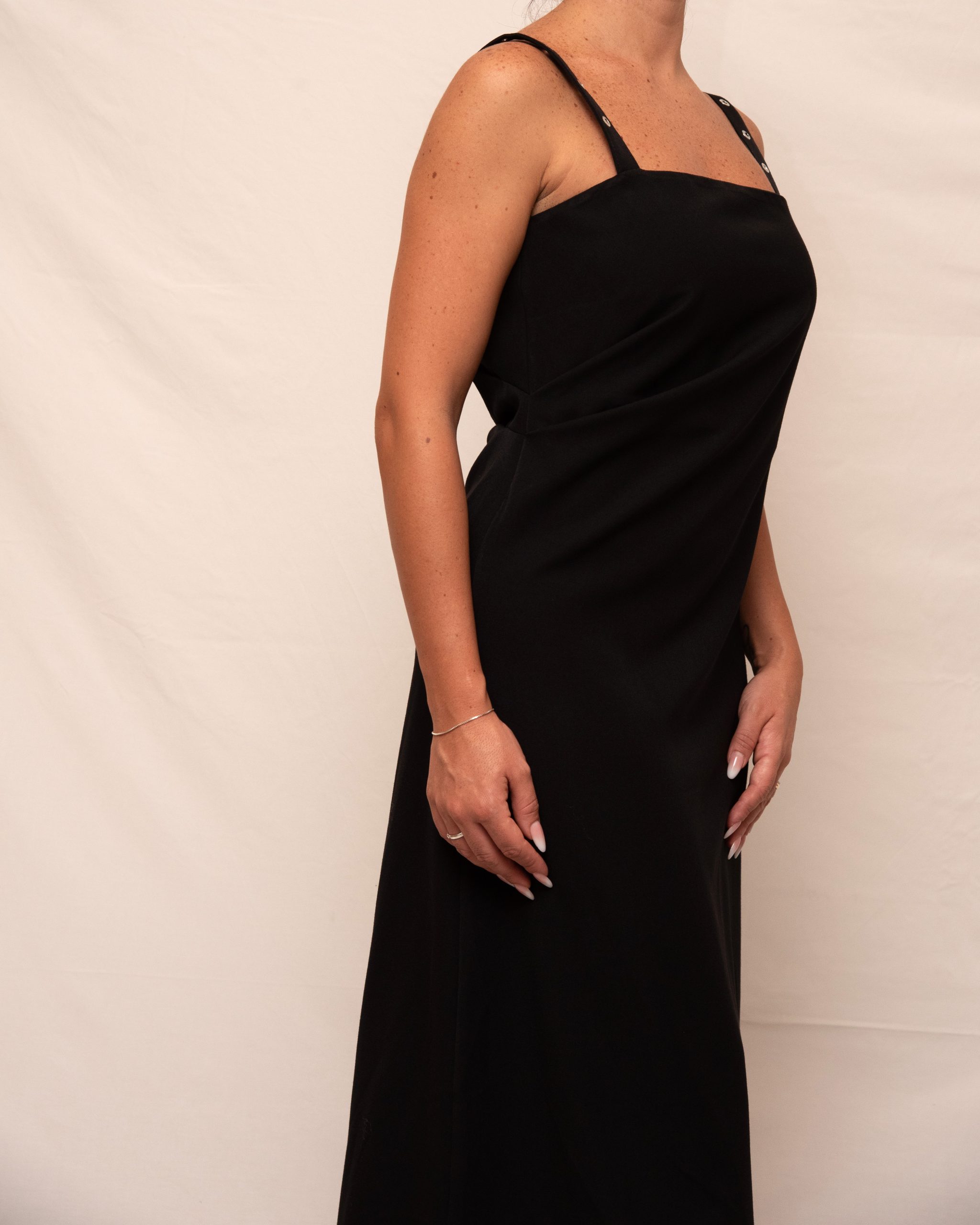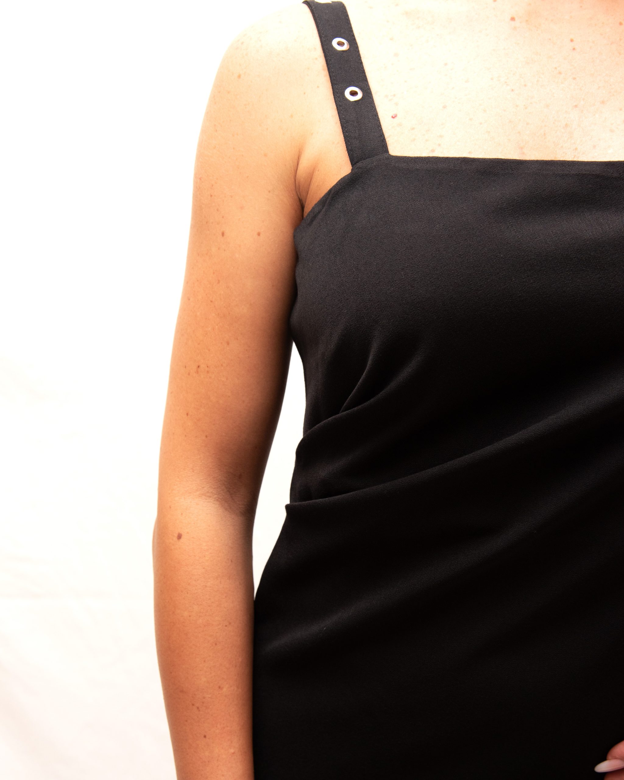 La vestibilità è regolare presenta un drappeggio che abbraccia il punto vita.